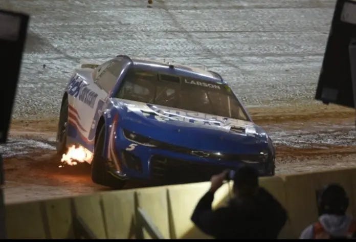 Prior to Christopher Bell going on a dominant run at the end of Sunday’s Food City Dirt Race, it was Kyle Larson who had the dominant hand. Starting from the pole, Larson led 75-laps and won the opening Stage of the race. However, a spin to start Stage 3, and then a crash with Ryan Preece on lap 175 of the event put an end to his race.