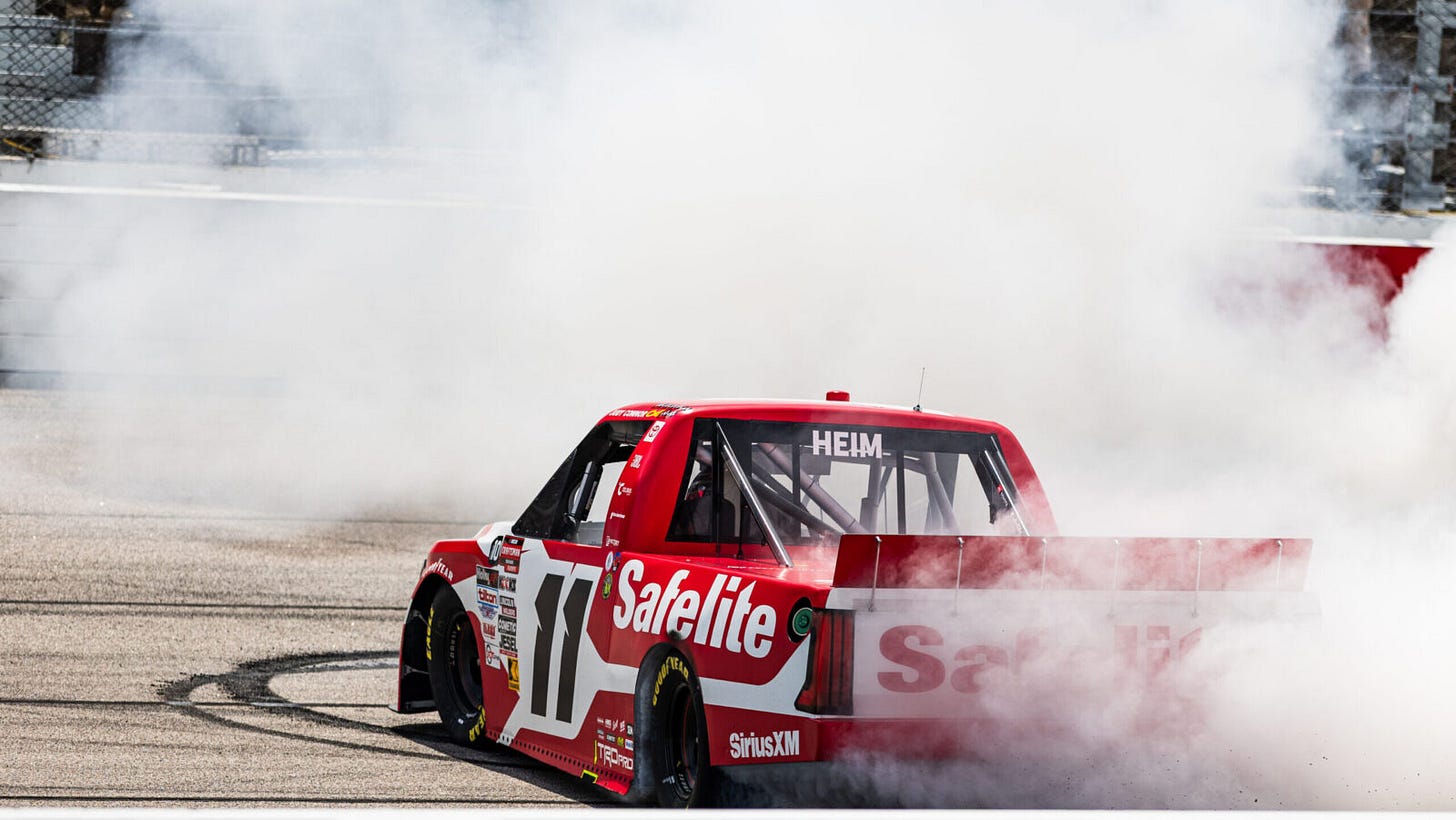 In the end, Heim would hold off Daniel Hemric to take the victory, which is now his 19th in NASCAR Craftsman Truck Series competition, and his eighth win of the season is one shy of Greg Biffle’s all-time series record of nine wins, which he achieved in 1999.